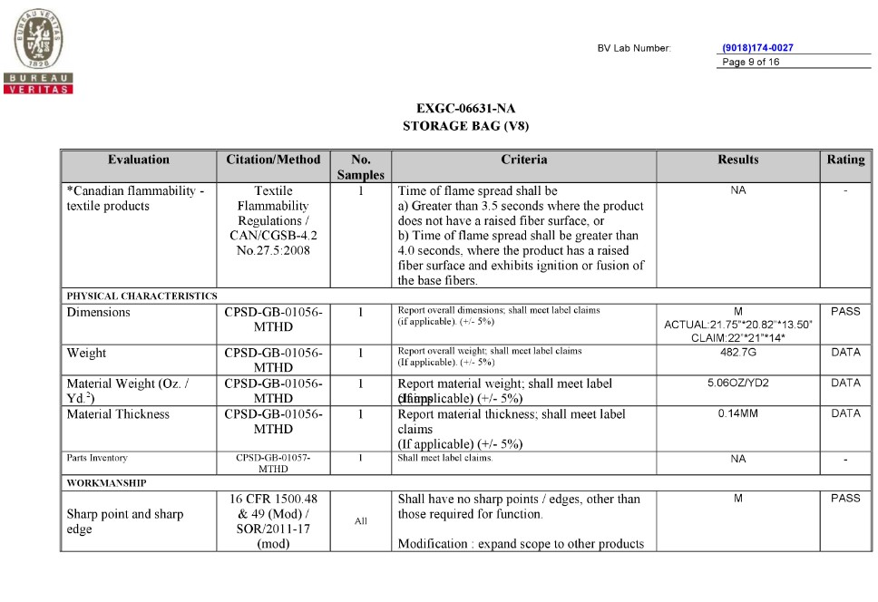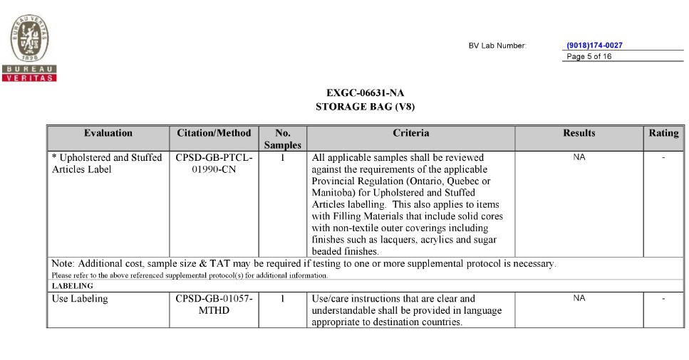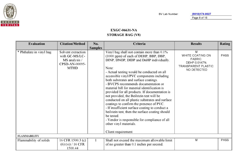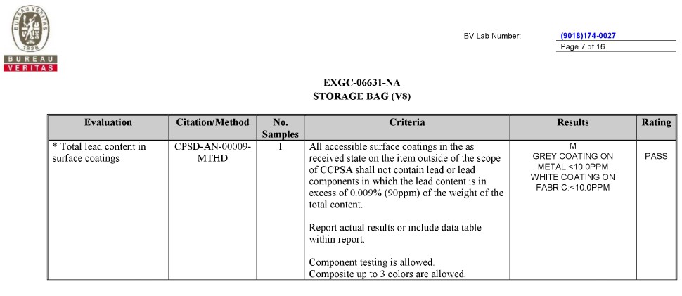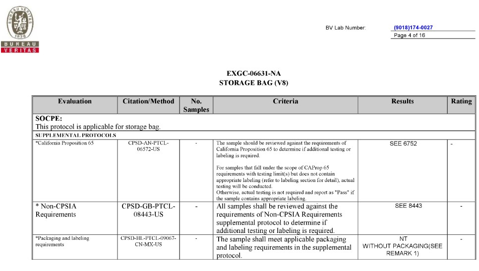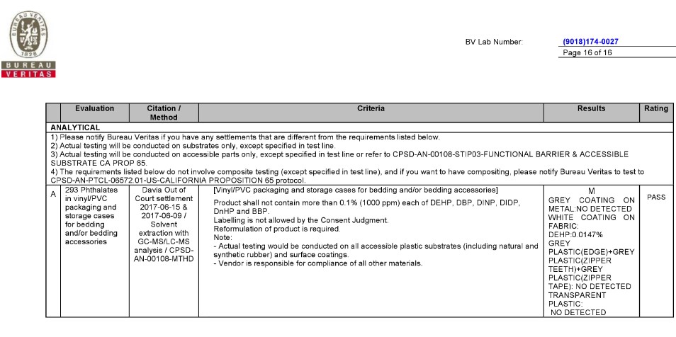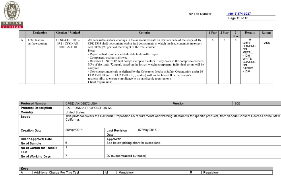 BV TEST REPORT of CA Prop.65 |